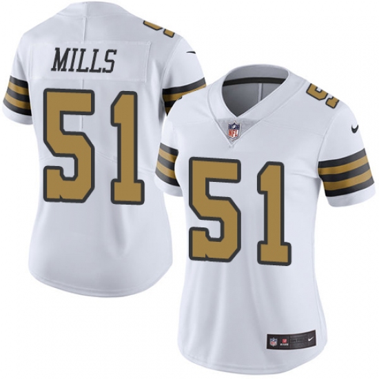 Home>NFL>New Orleans Saints>Sam Mills>Women's Nike New Orleans Saints #51 Sam Mills Limited White Rush Vapor Untouchable NFL Jersey