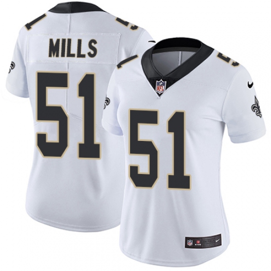 Home>NFL>New Orleans Saints>Sam Mills>Women's Nike New Orleans Saints #51 Sam Mills White Vapor Untouchable Limited Player NFL Jersey