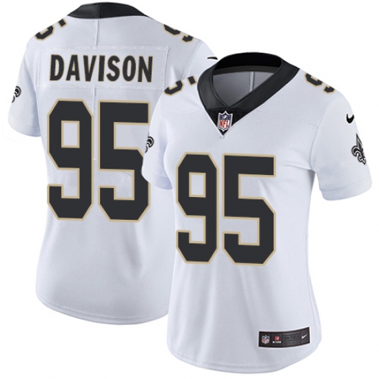 Women's Nike New Orleans Saints #95 Tyeler Davison White Vapor Untouchable Limited Player NFL Jersey