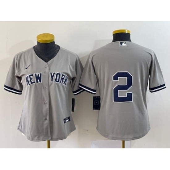 Women's Majestic New York Yankees #2 Derek Jeter Replica Grey Road MLB Jersey