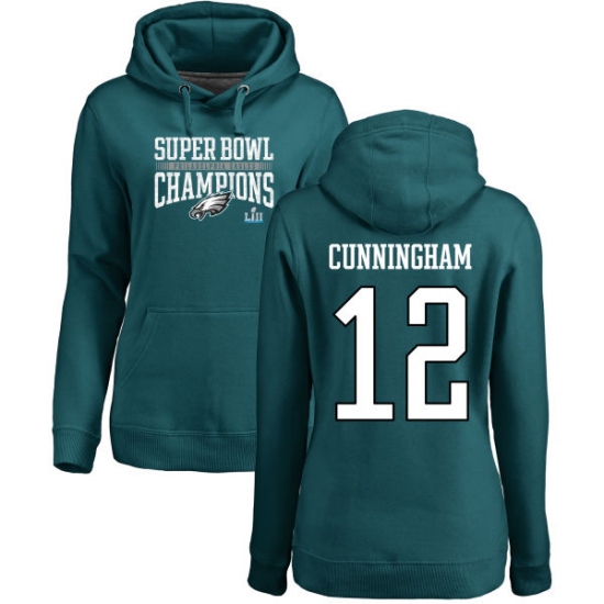 Women's Nike Philadelphia Eagles #12 Randall Cunningham Green Super Bowl LII Champions Pullover Hoodie
