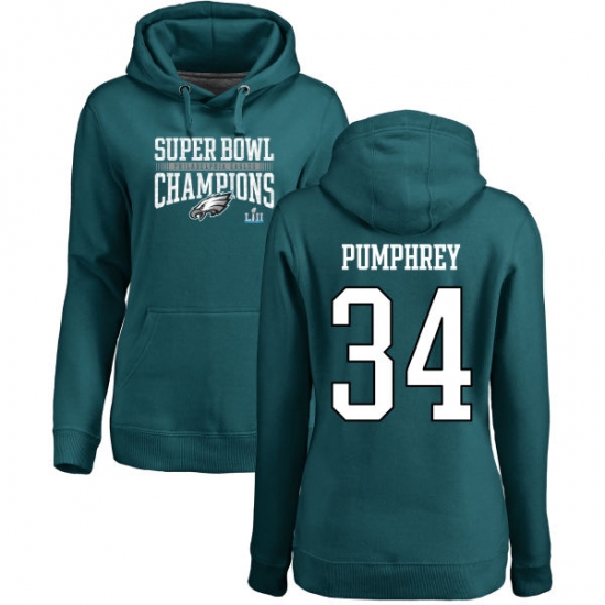 Women's Nike Philadelphia Eagles #34 Donnel Pumphrey Green Super Bowl LII Champions Pullover Hoodie