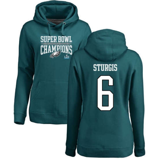 Women's Nike Philadelphia Eagles #6 Caleb Sturgis Green Super Bowl LII Champions Pullover Hoodie