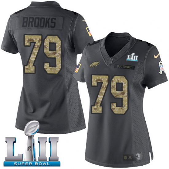 Women's Nike Philadelphia Eagles #79 Brandon Brooks Limited Black 2016 Salute to Service Super Bowl LII NFL Jersey