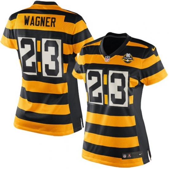 Women's Nike Pittsburgh Steelers #23 Mike Wagner Limited Yellow/Black Alternate 80TH Anniversary Throwback NFL Jersey