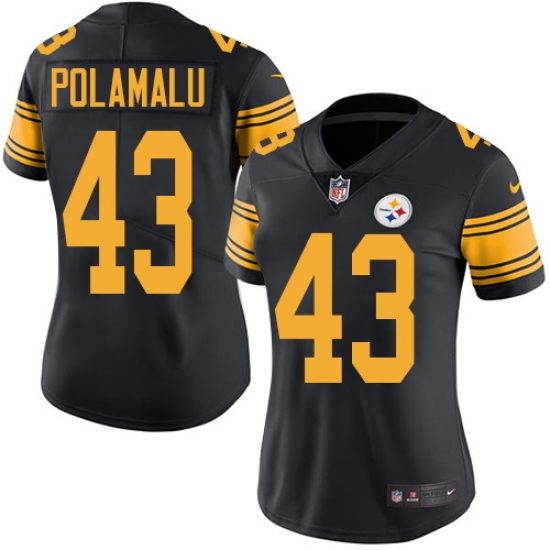 Home>NFL>Pittsburgh Steelers>Troy Polamalu>Women's Nike Pittsburgh Steelers #43 Troy Polamalu Limited Black Rush Vapor Untouchable NFL Jersey
