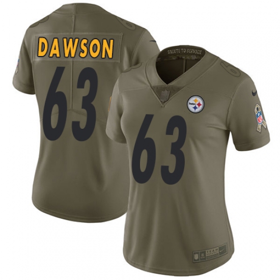 Home>NFL>Pittsburgh Steelers>Dermontti Dawson>Women's Nike Pittsburgh Steelers #63 Dermontti Dawson Limited Olive 2017 Salute to Service NFL Jersey