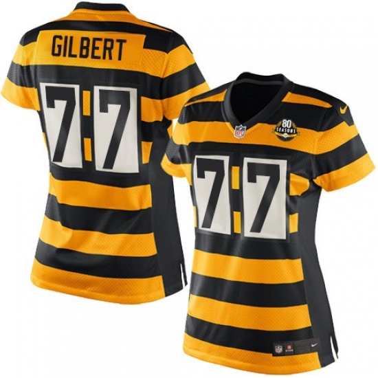 Women's Nike Pittsburgh Steelers #77 Marcus Gilbert Limited Yellow/Black Alternate 80TH Anniversary Throwback NFL Jersey