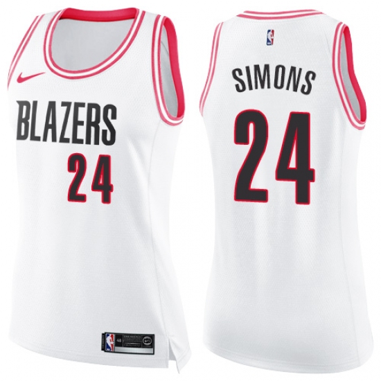 >Women's Nike Portland Trail Blazers #24 Anfernee Simons Swingman White Pink Fashion NBA Jersey