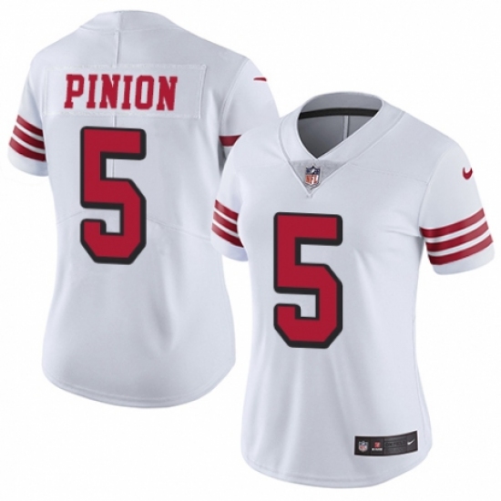 >Women's Nike San Francisco 49ers #5 Bradley Pinion Limited White Rush Vapor Untouchable NFL Jersey