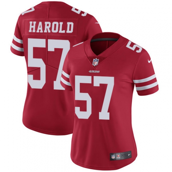 Women's Nike San Francisco 49ers #57 Eli Harold Red Team Color Vapor Untouchable Limited Player NFL Jersey