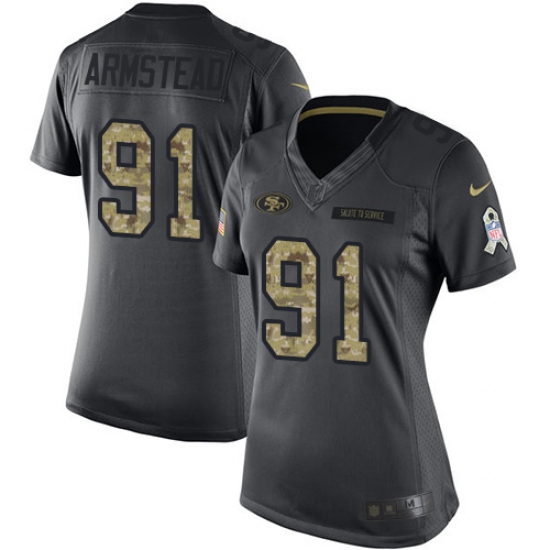 Home>NFL>San Francisco 49ers>Arik Armstead>Women's Nike San Francisco 49ers #91 Arik Armstead Limited Black 2016 Salute to Service NFL Jersey