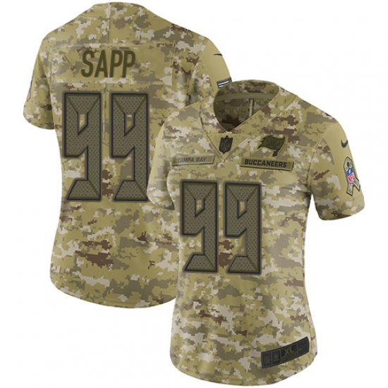 >Women's Nike Tampa Bay Buccaneers #99 Warren Sapp Limited Camo 2018 Salute to Service NFL Jersey