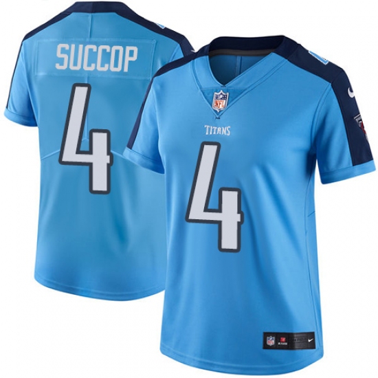 Home>NFL>Tennessee Titans>Ryan Succop>Women's Nike Tennessee Titans #4 Ryan Succop Limited Light Blue Rush Vapor Untouchable NFL Jersey