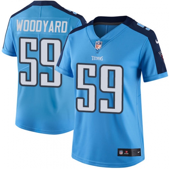 Home>NFL>Tennessee Titans>Wesley Woodyard>Women's Nike Tennessee Titans #59 Wesley Woodyard Limited Light Blue Rush Vapor Untouchable NFL Jersey