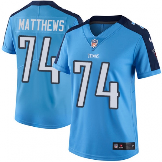 Home>NFL>Tennessee Titans>Bruce Matthews>Women's Nike Tennessee Titans #74 Bruce Matthews Light Blue Team Color Vapor Untouchable Limited Player NFL Jersey