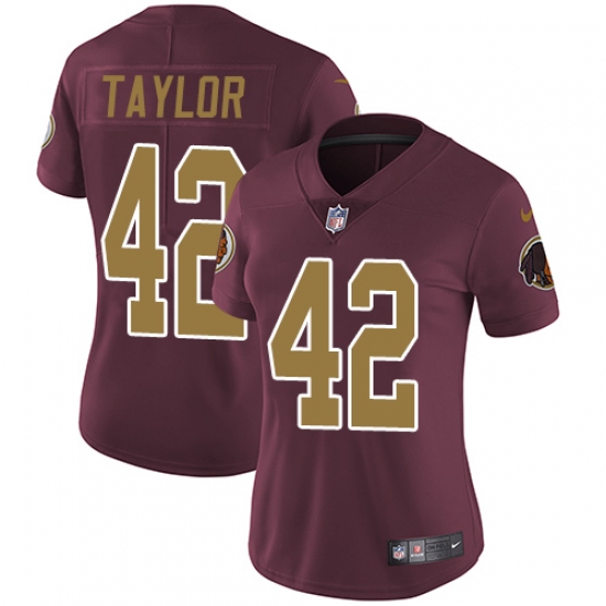 Home>NFL>Washington Redskins>Charley Taylor>Women's Nike Washington Redskins #42 Charley Taylor Burgundy Red/Gold Number Alternate 80TH Anniversary Vapor Untouchable Limited Player NFL Jersey