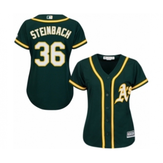 >Women's Oakland Athletics #36 Terry Steinbach Authentic Green Alternate 1 Cool Base Baseball Jersey