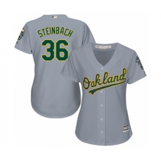 >Women's Oakland Athletics #36 Terry Steinbach Authentic Grey Road Cool Base Baseball Jersey