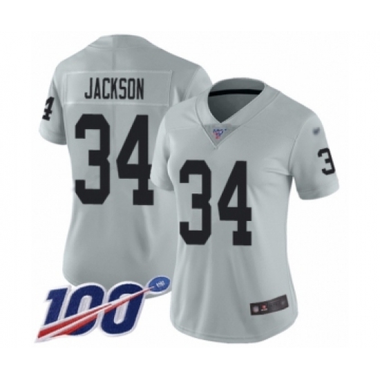 >Women's Oakland Raiders #34 Bo Jackson Limited Silver Inverted Legend 100th Season Football Jersey
