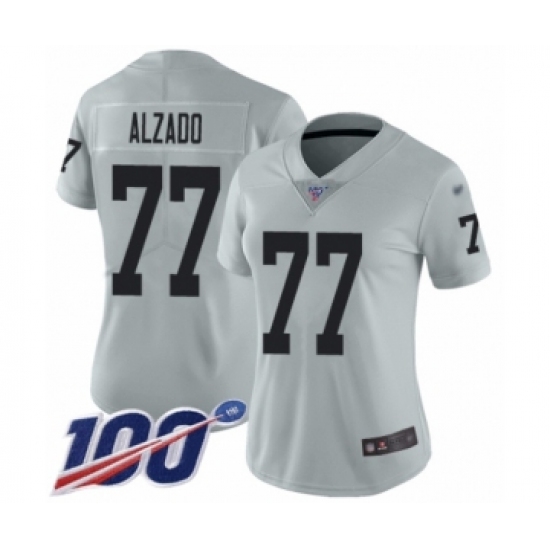 Women's Oakland Raiders #77 Lyle Alzado Limited Silver Inverted Legend 100th Season Football Jersey