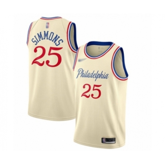 Men's Nike Philadelphia 76ers #25 Ben Simmons Swingman Cream NBA Jersey - City Edition