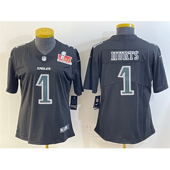 Women's Philadelphia Eagles #1 Jalen Hurts Black 2025 Super Bowl LIX Fashion Vapor Untouchable Limited Football Stitched Jersey(Run Small)