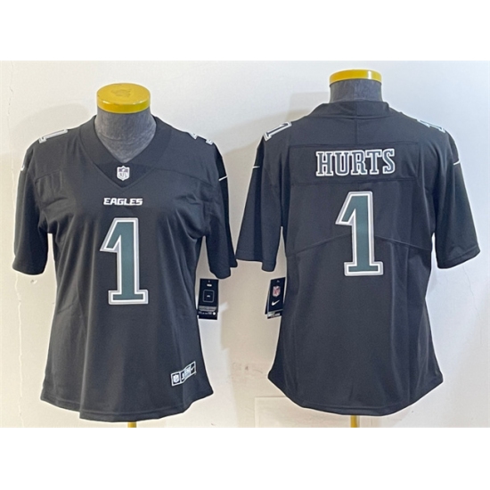 Women's Philadelphia Eagles #1 Jalen Hurts Black Fashion Vapor Untouchable Limited Football Stitched Jersey(Run Small)