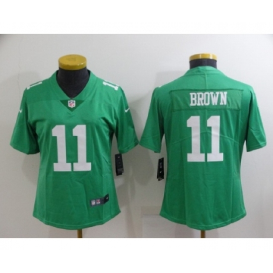 >Women's Philadelphia Eagles #11 A. J. Brown Green Vapor Untouchable Limited Stitched Football Jersey(Run Small)