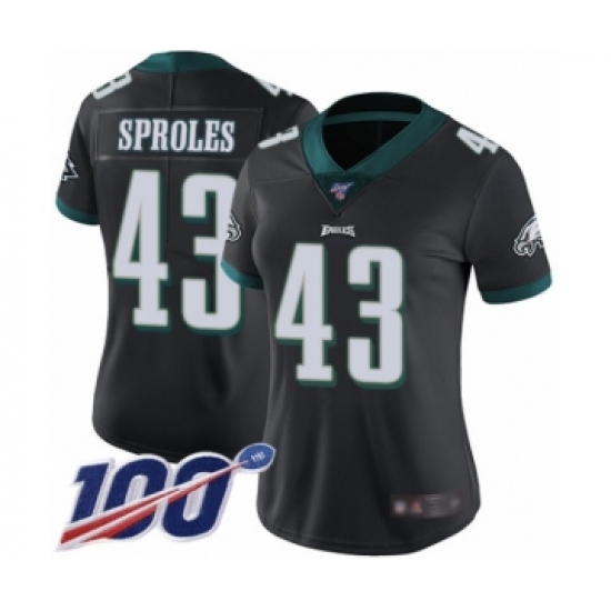 Women's Philadelphia Eagles #43 Darren Sproles Black Alternate Vapor Untouchable Limited Player 100th Season Football Jersey