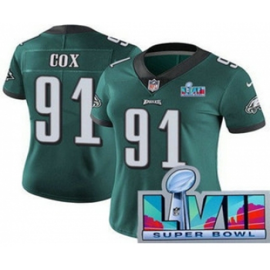 >Women's Philadelphia Eagles #91 Fletcher Cox Limited Green Super Bowl LVII Vapor Jersey