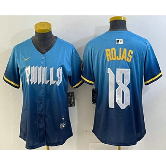 Women's Philadelphia Phillies #18 Johan Rojas Blue 2024 City Connect Limited Stitched Jersey