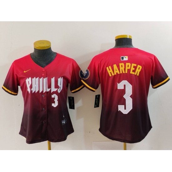 Women's Philadelphia Phillies #3 Bryce Harper Number Red 2024 City Connect Limited Jersey