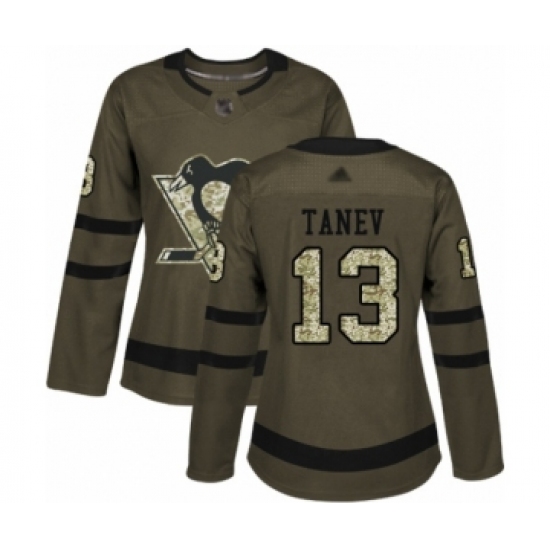 >Women's Pittsburgh Penguins #13 Brandon Tanev Authentic Green Salute to Service Hockey Jersey