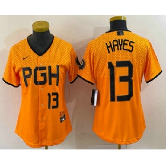 Women's Pittsburgh Pirates #13 KeBryan Hayes Yellow 2023 City Connect Stitched Jersey