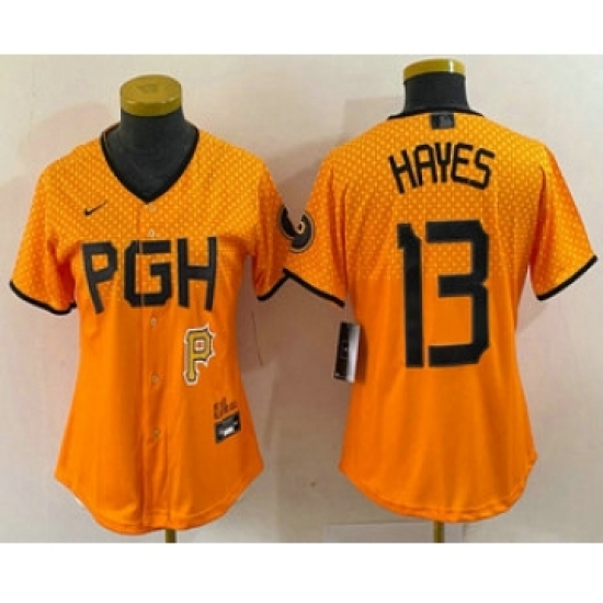 Women's Pittsburgh Pirates #13 KeBryan Hayes Yellow 2023 City Connect Stitched Jersey1