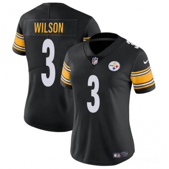 Women's Pittsburgh Steelers #3 Russell Wilson Black Vapor Football Stitched Jersey(Run Small)