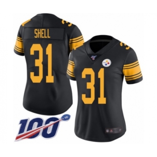 >Women's Pittsburgh Steelers #31 Donnie Shell Limited Black Rush Vapor Untouchable 100th Season Football Jersey
