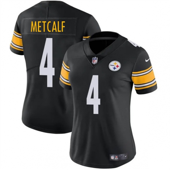 >Women's Pittsburgh Steelers #4 DK Metcalf Black 2025 Vapor Football Stitched Jersey(Run Small)