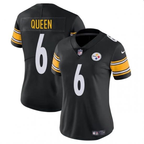 Women's Pittsburgh Steelers #6 Patrick Queen Black Vapor Football Stitched Jersey(Run Small)