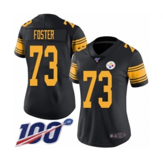 >Women's Pittsburgh Steelers #73 Ramon Foster Limited Black Rush Vapor Untouchable 100th Season Football Jersey