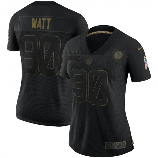 >Women's Pittsburgh Steelers #90 T. J. Watt Black Nike 2020 Salute To Service Limited Jersey