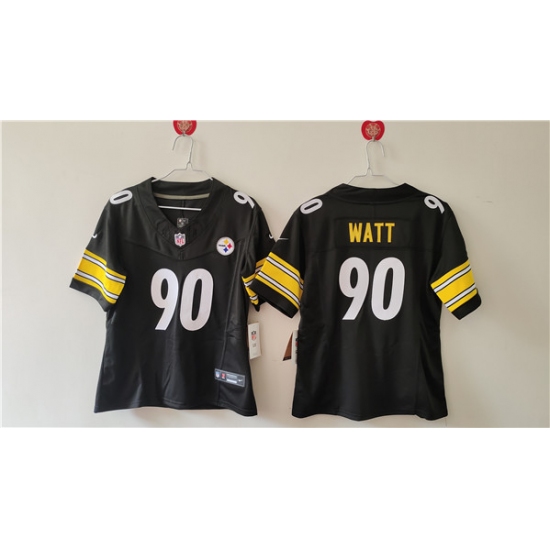 Women's Pittsburgh Steelers #90 T. J. Watt Black 2023 F.U.S.E. Stitched Jersey