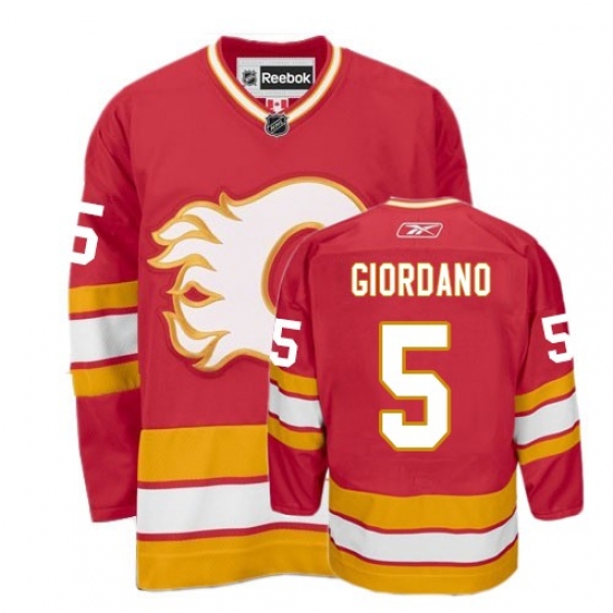 Women's Reebok Calgary Flames #5 Mark Giordano Authentic Red Third NHL Jersey