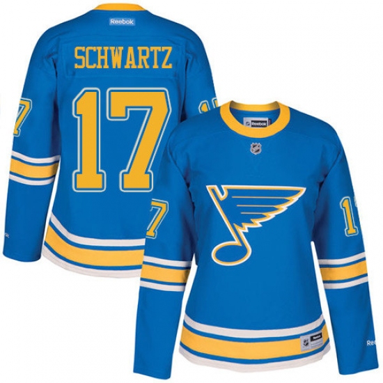 Home>NHL>St. Louis Blues>Jaden Schwartz>Women's Reebok St. Louis Blues #17 Jaden Schwartz Premier Blue 2017 Winter Classic NHL Jersey