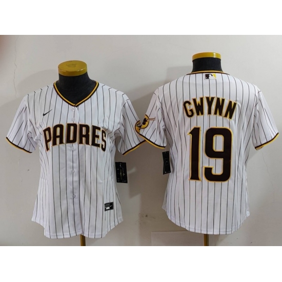Women's San Diego Padres #19 Tony Gwynn White Team Logo Stitched Cool Base Nike Jerseys