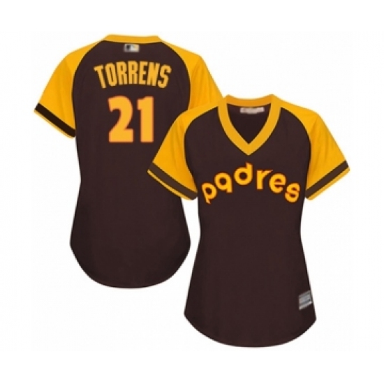 >Women's San Diego Padres #21 Luis Torrens Authentic Brown Alternate Cooperstown Cool Base Baseball Player Jersey
