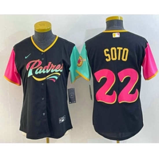 >Women's San Diego Padres #22 Juan Soto Black 2022 City Connect Cool Base Stitched Jersey