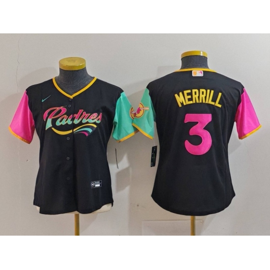 Women's San Diego Padres #3 Jackson Merrill Black Fashion Baseball Jersey