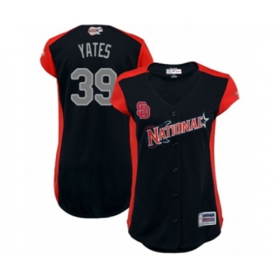 >Women's San Diego Padres #39 Kirby Yates Authentic Navy Blue National League 2019 Baseball All-Star Jersey